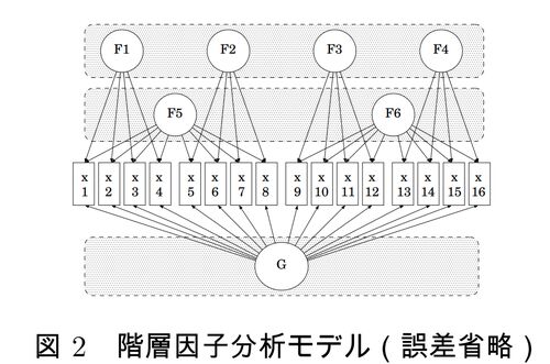 階層因子分析(hierarchical factor analysis)について松田淑美・狩野裕「高次因子分析モデルと階層因子分析モデルについて」から説明を引用しよう。 http://www.sigmath.es.osaka-u.ac.jp/~kano/research/meeting/20050827_BSJ33/matsudaABS.pdf 階層因子…